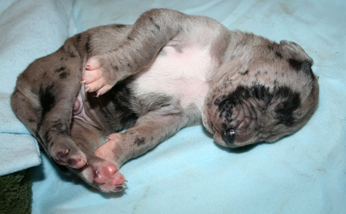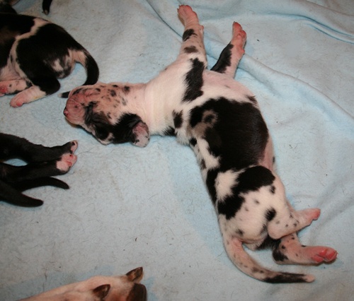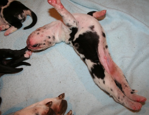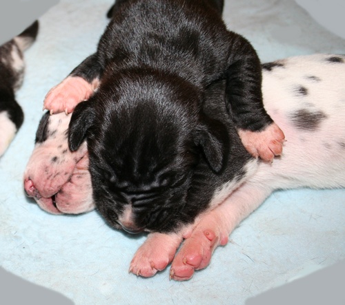 gefleckter Rüde Nr. 9 erst einmal richtig recken und.... ... strecken :-) ... danach wieder weiterschlafen :-) Grautiger Rüde Nr. 7 schwarze Hündin Nr. 4 schwarzer Rüde Nr. 1 |