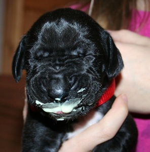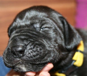 30.10.12 Tag 9 Die ersten Welpen haben die 1kg Marke erreicht. Der Tagesablauf besteht weiterhin 90% aus essen und schlafen :-) Ohren und Augen sind noch verschlossen, sie werden sich in den nächsten Tagen langsam öffnen. |