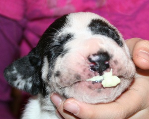 04.11.12 Tag 14 2 Wochen alt ... erste Wurmkur ... die ersten Augen öffnen sich Zwei Wochen sind die Kleinen heute alt. Seid gestern Abend, beginnen sich langsam die Augen der Kleinen zu öffnen. Heute stand die erste Wurmkur an, begeistert waren sie nicht von der (? leckeren ?) Paste, wie man an den Gesichtsausdrücken sehen kann :-) auch Mama Inara wurde mit entwurmt. |