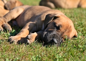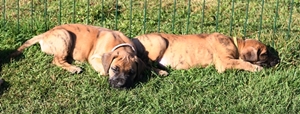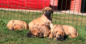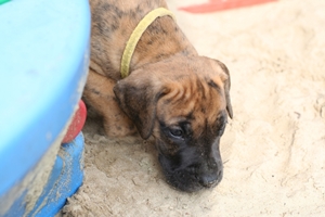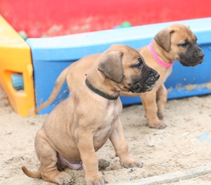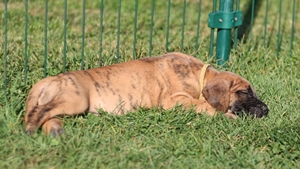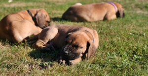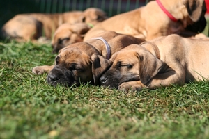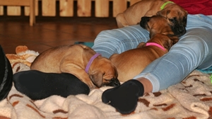 schlafen sie jedoch nun zusammen mit Mama Kyana im Welpenhaus.