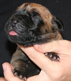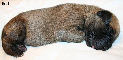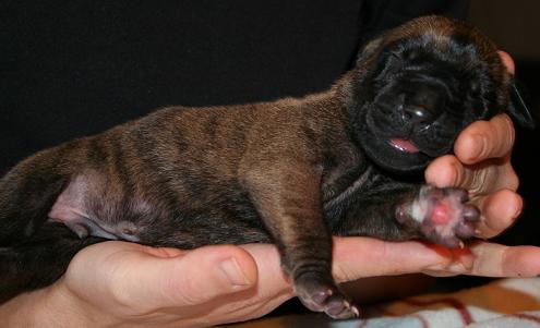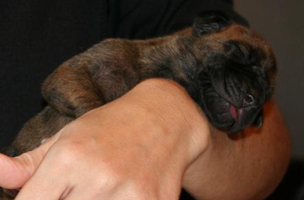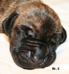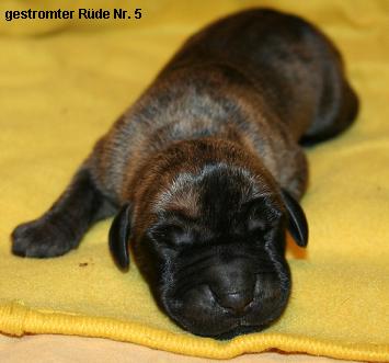 Krümel Welpe Nr. 5 Rüde gestromt Gewicht: 570g |