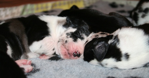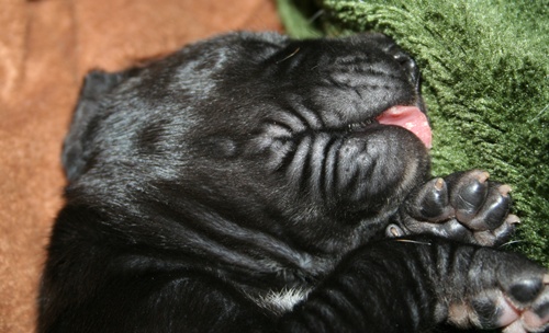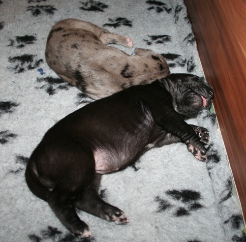 gefleckter Rüde Nr. 9 erst einmal richtig recken und.... ... strecken :-) ... danach wieder weiterschlafen :-) Grautiger Rüde Nr. 7 schwarze Hündin Nr. 4 schwarzer Rüde Nr. 1 |