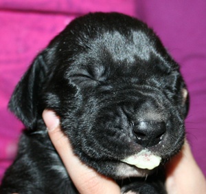 wollte auch nicht mehr so richtig trinken. Sofort zum Tierärztlichen Notdienst, doch leider hatte er die Vermutung, das der Welpe bei der Geburt Fruchtwasser in die Lunge inspiertit hat, dadurch haben sich Keime entwickelt und diese haben sich dann leider schleichend über die Tage zu einer Tödlichen Lungenentzündung entwickelt, leider konnte ihn die schnell Tierärztliche Behandlung nicht mehr helfen und so verstarb er heute Nacht um 05:00 Uhr. |