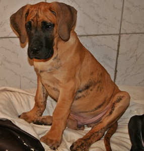 den nächsten Tagen nach und nach ausziehen werden. In der Rubrik Unsere Nachzuchten hat jeder Welpe eine eigene Seite, dort werden wir im Zukunft die Bilder und Infos, die uns die Welpeneltern zur Verfügung stellen, online stellen. Bis auf Quincy und Quax haben inzwischen alle Welpen ihre passenden Familien gefunden. Wir wünschen allen Besitzern viel Spaß, viel Freude und ganz ganz viele schöne Doggenjahre. Über Quax und Quincy werden wir weiterhin in Neuigkeiten berichten und hoffen, das auch die zwei bald ein schönes, neues Zuhause finden werden. |