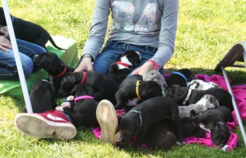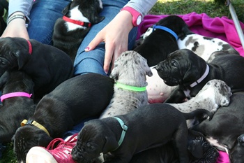 Tag 29 Ein wunderschöner Pfingstsonntag, mit vielen lieben zukünftigen Welpeneltern. Heute waren all unsere 17 Welpen aus dem U- und V-Wurf zusammen im Garten unterwegs.