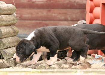 Tag 35 Heute haben uns wieder ganz liebe zukünftige Welpeneltern besucht. Mrs. Grün Hündin gefleckt Nr. 6, hat ihren Namen bekommen, sie heißt Urania. Mr. Grau Rüde schwarz Nr.7 hat auch seinen Namen bekommen, er heißt Utaka Sadie. Die U- und V- Welpen waren wieder zusammen im Garten unterwegs. Zur Info und Wiedererkennung :-) Die U`s tragen Halsbänder "außer die gefleckte".