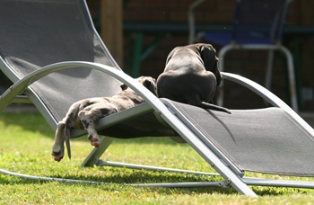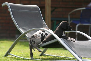 46 Die Kleine Rasselbande, erobert von Tag zu Tag immer mehr bei uns im Garten, heute der Liegestuhl :-) |