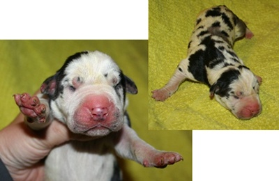 Rüde grau-gefleckt Nr. 2 Abzeichen: weißer Halskragen, Riesen großer weißer Brustfleck, weißes Maul u. weißer Nasenrücken, weißer Stirnstrich, alle 4 Pfoten weiße Abzeichen -vorne weiße Stiefelchen, weiße Rutenspitze |