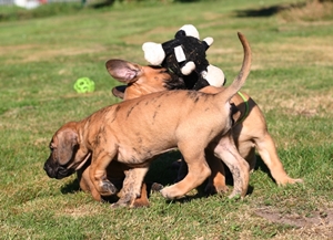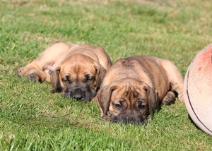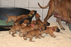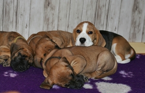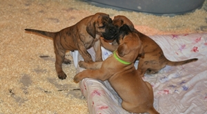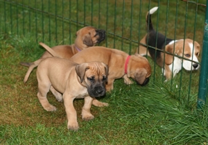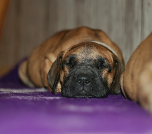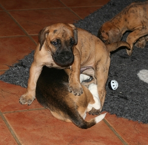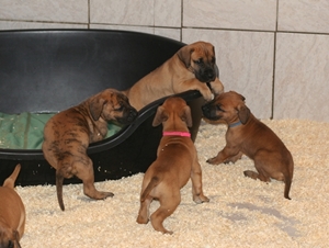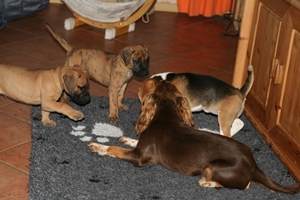 schlafen sie jedoch nun zusammen mit Mama Kyana im Welpenhaus.