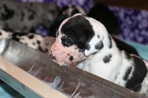 Tag 18 Ab heute werden wir anfangen, kleine Mahlzeiten dazu zufüttern. Zu Anfang gibt es, leckere Welpenmilch, in ein paar Tagen dann Welpenbrei. Wie man sieht hat es allen sehr gut geschmeckt. Nur an den Tischmanieren muss noch etwas gearbeitet werden :-) ... Ein kleines Video von der ersten Fütterung gibt es auch bei uns auf der Facebookseite zu sehen: AndreaNee DeutscheDoggen Vom Nordstern bei Facebook (klick hier)